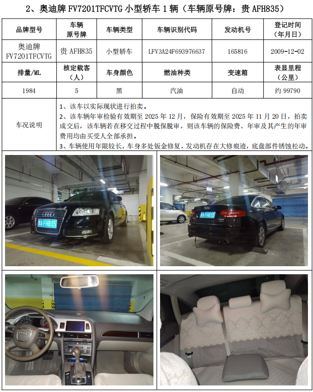 拍品編號1:普瑞維亞小型普通客車1輛、奧迪牌小型轎車2輛、昂科雷小型越野客車2輛,共計5輛,整體拍賣